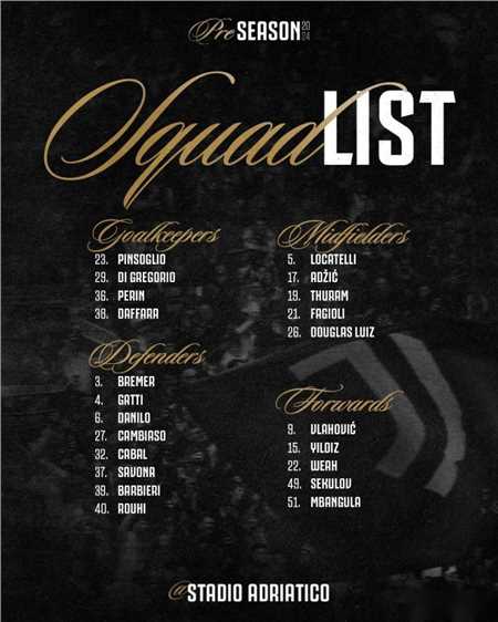北京时间8月3日,尤文官方公布了对阵布雷斯特友谊赛的大名单。