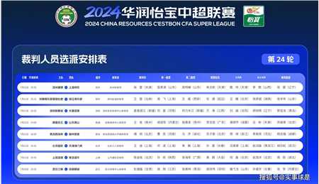 7月20日-22日,2024赛季中超联赛提前进行第24轮角逐。赛前,中国足协发布了本轮裁判人员选派安排表。