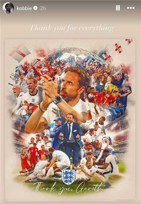 英格兰连续第二届欧洲杯决赛遭遇失利,索斯盖特已经辞去英格兰主教练一职,科比-梅努在社交媒体表达了感谢。