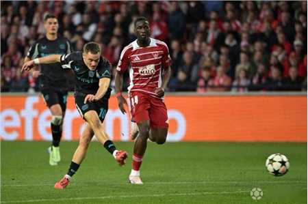 欧冠联赛阶段第3轮的一场较量中,布雷斯特和勒沃库森在上半场结束后暂时战成1-1。