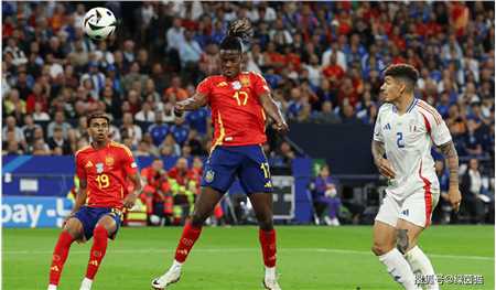 这场比赛西班牙队的边锋尼科-威廉姆斯表现非常出色,首先进球就是来自于他制造的威胁,尼科-威廉姆斯边路传中,莫拉塔的头球一蹭,才有了后面意大利队的卡拉菲奥里自摆乌龙,西班牙队1比0领先。