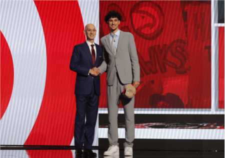 老鹰用状元签选中扎卡里-里萨谢,里萨谢身高2米06,臂展2米08,是一名万金油前锋。上赛季里萨谢效力法甲jl布尔格,场均22分钟可以得到10.1分3.8篮板,投篮命中率43.9%,三分命中率35.2%。