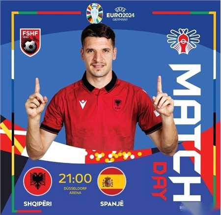 北京时间6月24日,阿尔巴尼亚队发布欧洲杯小组赛末轮战西班牙队的赛前海报,队长吉姆西蒂单人出镜。