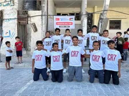 据土耳其媒体消息,土耳其人道主义援助协会为加沙难民孩子捐赠c罗球衣,并举办球赛。
